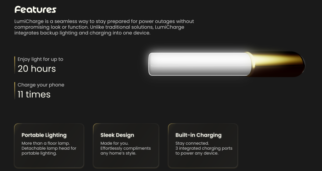 Light and electricity are the 2 resources that are most significantly disrupted during power outages, so we built LumiCharge as the solution.